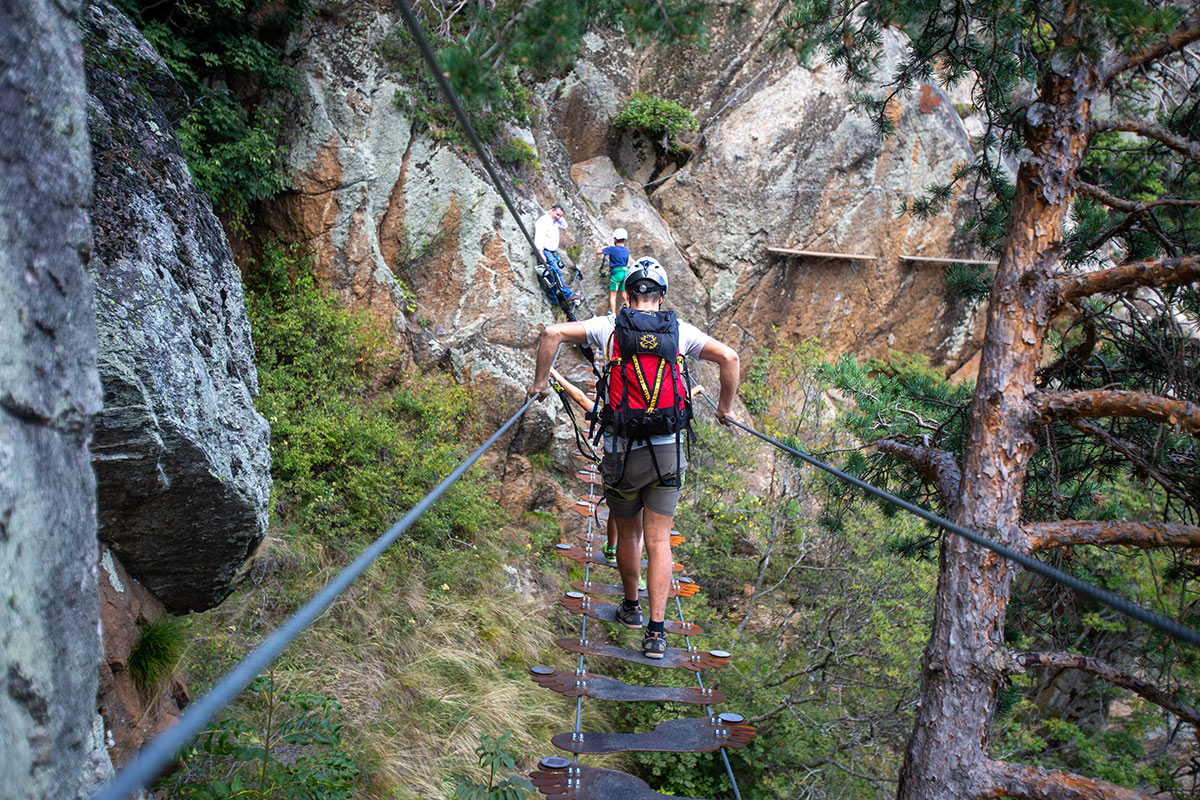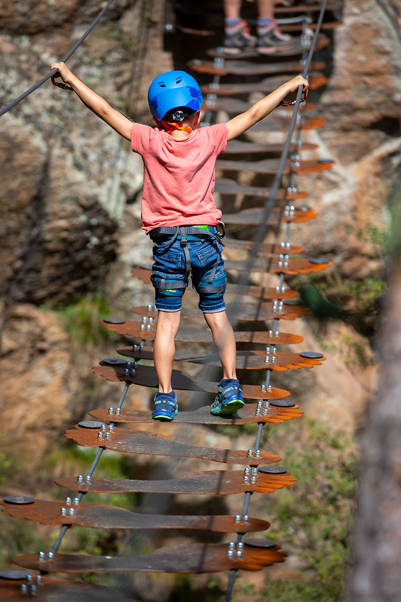 Der große Überhang lässt sich mühelos mit künstlichen Tritten überwinden, und schon steht man an der „Big-foot-bridge“. Mit ihren 33 imposanten Metallfüßen wird das Überqueren der 20 Meter langen Brücke zum Kinderspiel. Man gelangt auch über einen Waldweg dorthin, der vom „Plattform-Zustiegsweg“ abzweigt. Am Ende der Brücke führt ein einfacher Pfad, der als „Schildkröte“ oder „Turtle“ bekannt ist, weiter. Aufmerksame Beobachter haben hier die Möglichkeit, die beeindruckende riesige Schildkröte zu entdecken.